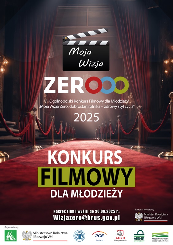 VII edycja Ogólnopolskiego Konkursu Filmowego dla Młodzieży „Moja Wizja Zero: dobrostan rolnika - zdrowy styl życia” odbywa się pod Patronatem Honorowym Ministra Rolnictwa i Rozwoju Wsi. Współorganizatorami konkursu są: Ministerstwo Rolnictwa i Rozwoju Wsi, Agencja Restrukturyzacji i Modernizacji Rolnictwa, Krajowy Ośrodek Wsparcia Rolnictwa, Państwowa Inspekcja Pracy Główny Inspektorat Pracy, AGRO Ubezpieczenia - Towarzystwo Ubezpieczeń Wzajemnych, Fundacja PGE.